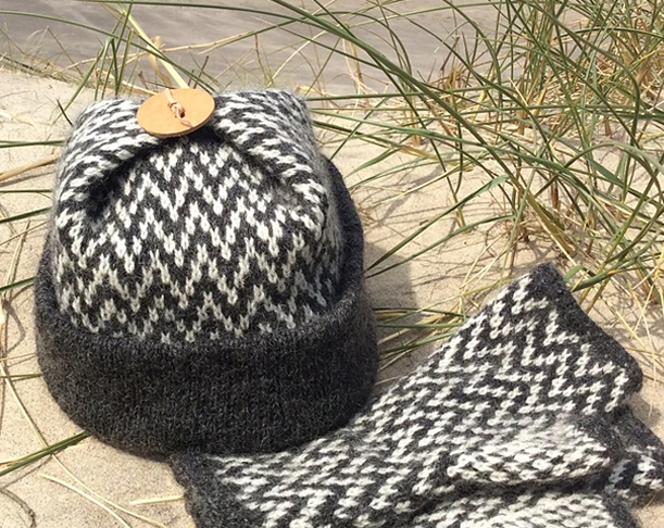 The North Sea is very stormy in Denmark and a wonderful inspiration for designing. The knitted North Sea Hat and finger less mittens by Lone Kjeldsen reflect such influences. The warm and well-fitting hat is designed for a walk along the breezy coast. The matching finger-less gloves are perfect when collecting beautiful shells and pebbles. In conclusion, a perfect look and practical style for the beach.